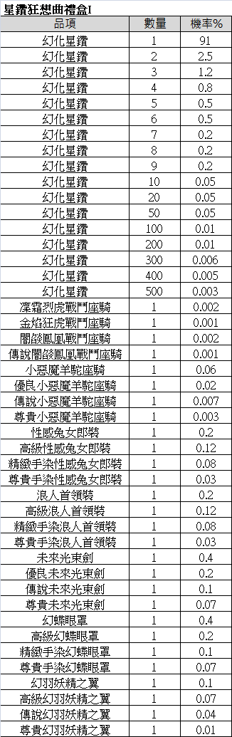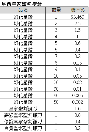 ◆付費福袋/鍊金機率公告 聖境傳說 將於2022年4月起於商城推出的抽獎式福袋與星鑽祭台系統玩法,其「獎項」與「機率」均會公開於當週公告。